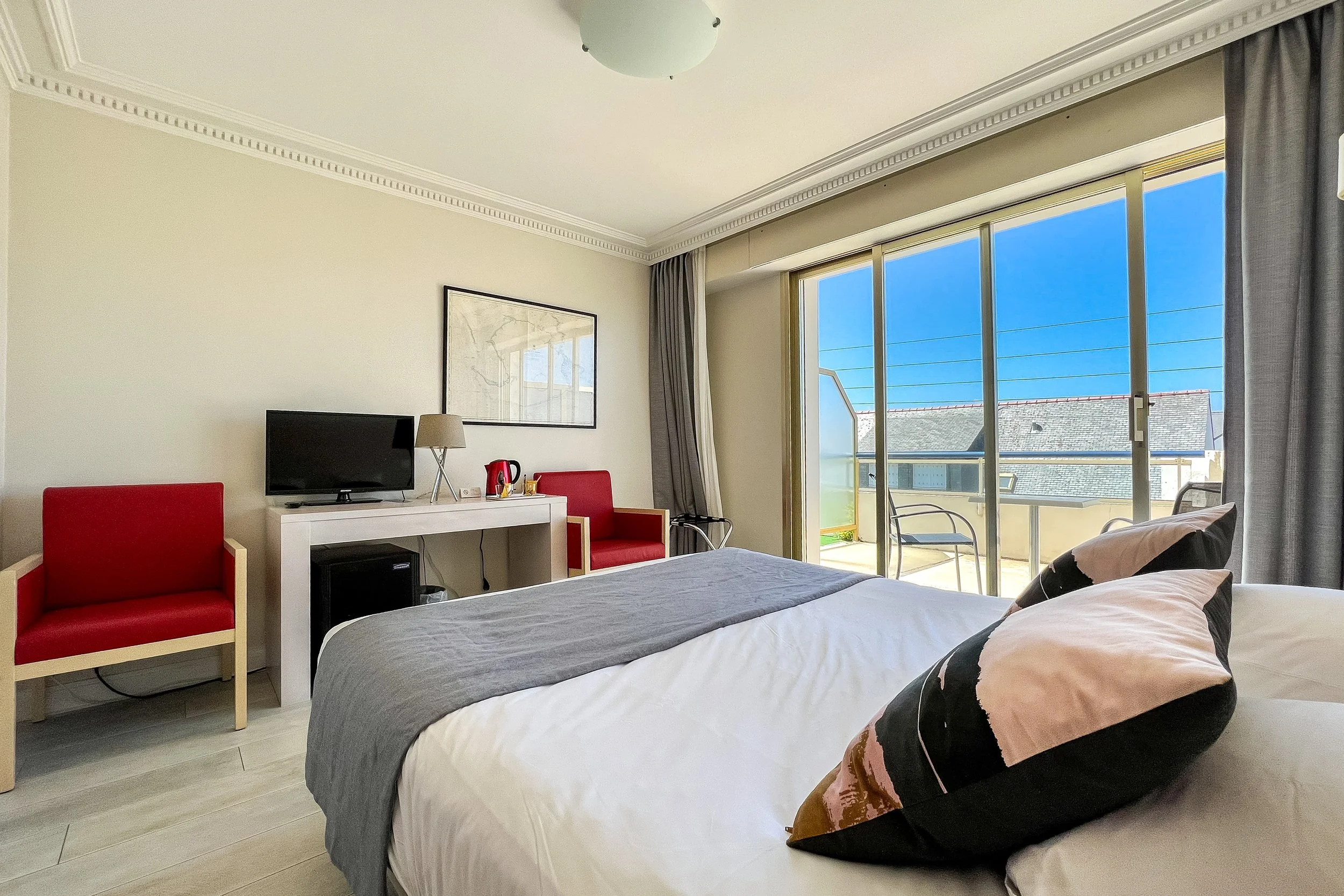 Des chambres spacieuses baignées de lumières, des balcons et des terrasses pour jouir pleinement de la vue sur Belle-Ile (chambres vue Belle-Ile au deuxième étage), des petits déjeuners qui se prolongent, un accueil chaleureux et des conseils pour toutes vos visites et vos activités pendant votre séjour à Quiberon… Bref, tout est réuni pour oublier vos soucis et passer des vacances qui riment avec plaisir et bien-être.